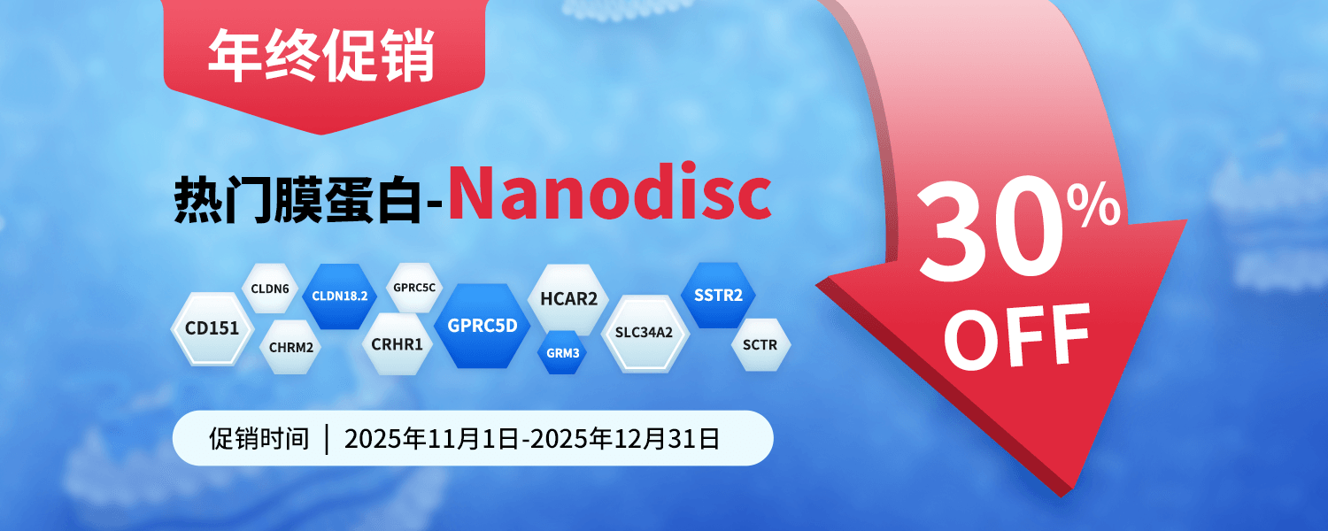 締碼生物現(xiàn)已建立700+現(xiàn)貨Nanodisc全長膜蛋白庫,覆蓋GPCR、離子通道、轉(zhuǎn)運蛋白等熱門靶點。為感謝科研伙伴的支持,締碼特別推出Nanodisc產(chǎn)品年終7折促銷活動,助力更多團隊加速膜蛋白藥物研究與創(chuàng)新。