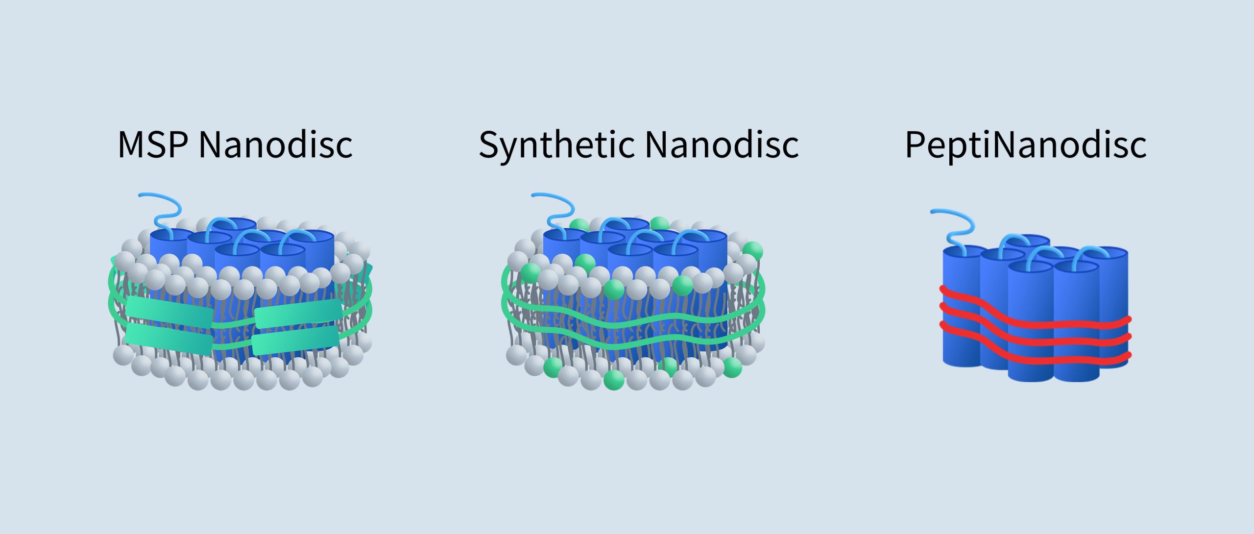 根據(jù)穩(wěn)定劑的不同,可將Nanodisc分為不同類型: MSP nanodisc,Synthetic nanodisc和PeptiNanodisc.