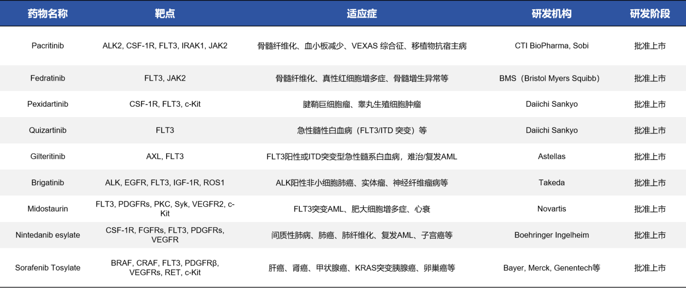 3.1 已批準(zhǔn)上市的FLT3靶點(diǎn)相關(guān)藥物