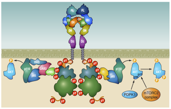- 酪氨酸激酶結(jié)構(gòu)域:由兩個(gè)激酶結(jié)構(gòu)域組成,并由激酶插入?yún)^(qū)隔開,是信號(hào)傳導(dǎo)的重要部分。