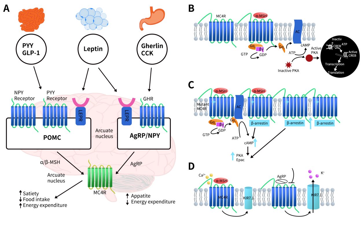 [4] Brouwers B, de Oliveira EM, Marti-Solano M, et al. Human MC4R variants affect endocytosis, trafficking and dimerization revealing multiple cellular mechanisms involved in weight regulation. Cell Rep. 2021; 34(12):108862.