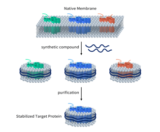 締碼生物科技有限公司是一家專注于可成藥靶點(diǎn)臨床前研發(fā)產(chǎn)品和服務(wù)的生物技術(shù)公司。締碼生物利用自主研發(fā)的Synthetic Nanodisc膜蛋白表達(dá)技術(shù)平臺已開發(fā)出全長的人MC4R蛋白。與市面上大多數(shù)MSP(膜支持蛋白)Nanodisc不同,締碼生物研發(fā)的Synthetic Nanodisc是基于真核表達(dá)系統(tǒng),能直接從完整的細(xì)胞中制作。在這個(gè)過程中,使用的合成高分子具有雙重功能。首先,它溶解細(xì)胞膜,類似于洗滌劑,然后利用天然細(xì)胞磷脂在膜蛋白周圍形成納米盤結(jié)構(gòu)??缒さ鞍卓烧系絅anodiscs中。