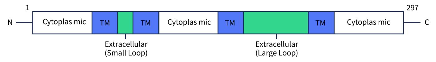 CD20?(B淋巴細胞表面抗原) 是一種33–37kDa的非糖基化蛋白,屬于MS4A(膜跨越四結(jié)構(gòu)域A家族)蛋白家族。人類CD20由位于染色體11q12.2的MS4A1基因編碼。CD20分子是一個由297個氨基酸組成的糖蛋白,具有四個跨膜結(jié)構(gòu)域(Fig 1),在B細胞發(fā)育中發(fā)揮關(guān)鍵作用。