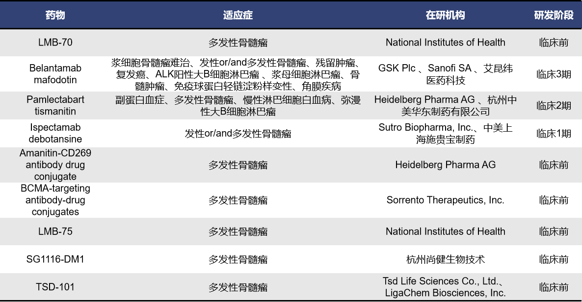 目前除了Belantamab mafodotin,處于臨床階段的還有Pamlectabart tismanitin(Heidelberg Pharma/華東醫(yī)藥)和Ispectamab debotansine(Sutro Biopharma/中美上海施貴寶)。