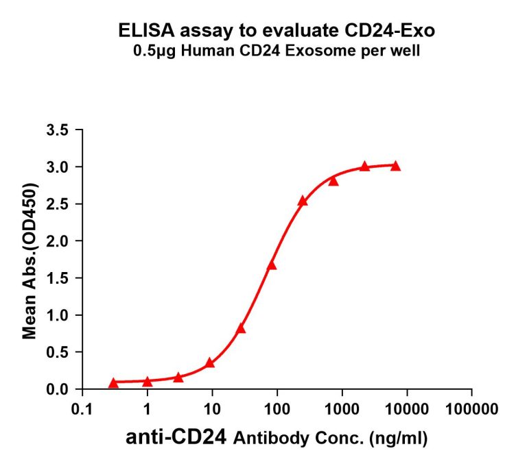 Human CD24 exosome (0.5μg/per well) binds to Anti-CD24 mAb (EC50 69.61ng/ml).