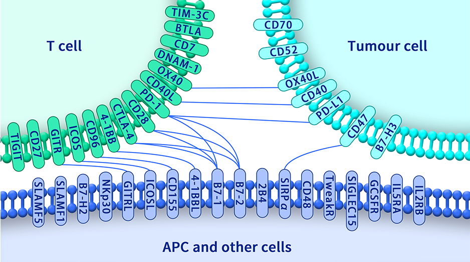 免疫檢查點(diǎn)是一類調(diào)節(jié)腫瘤免疫微環(huán)境的關(guān)鍵蛋白,包括可增強(qiáng)免疫應(yīng)答的共刺激型檢查點(diǎn)(如 OX40)和可抑制免疫反應(yīng)的共抑制型檢查點(diǎn)(如 PD-1)。