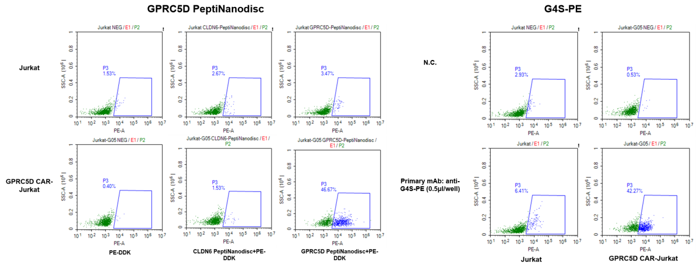 GPRC5D PeptiNanodisc (Cat.No.FLP400011) and G4S-PE protein were used to detect the positivity rate of GPRC5D CAR-T cells.