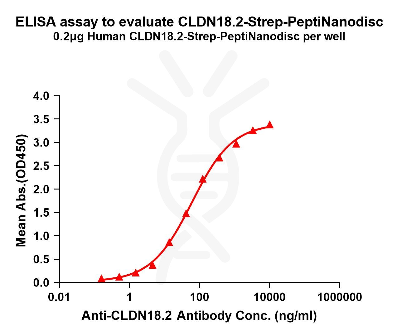 Human CLDN18.2-synthetic nanodisc (FLP120014) can bind loaded Human CLDN18.2 mAb (BME100075) with an affinity constant of 8.09nM.